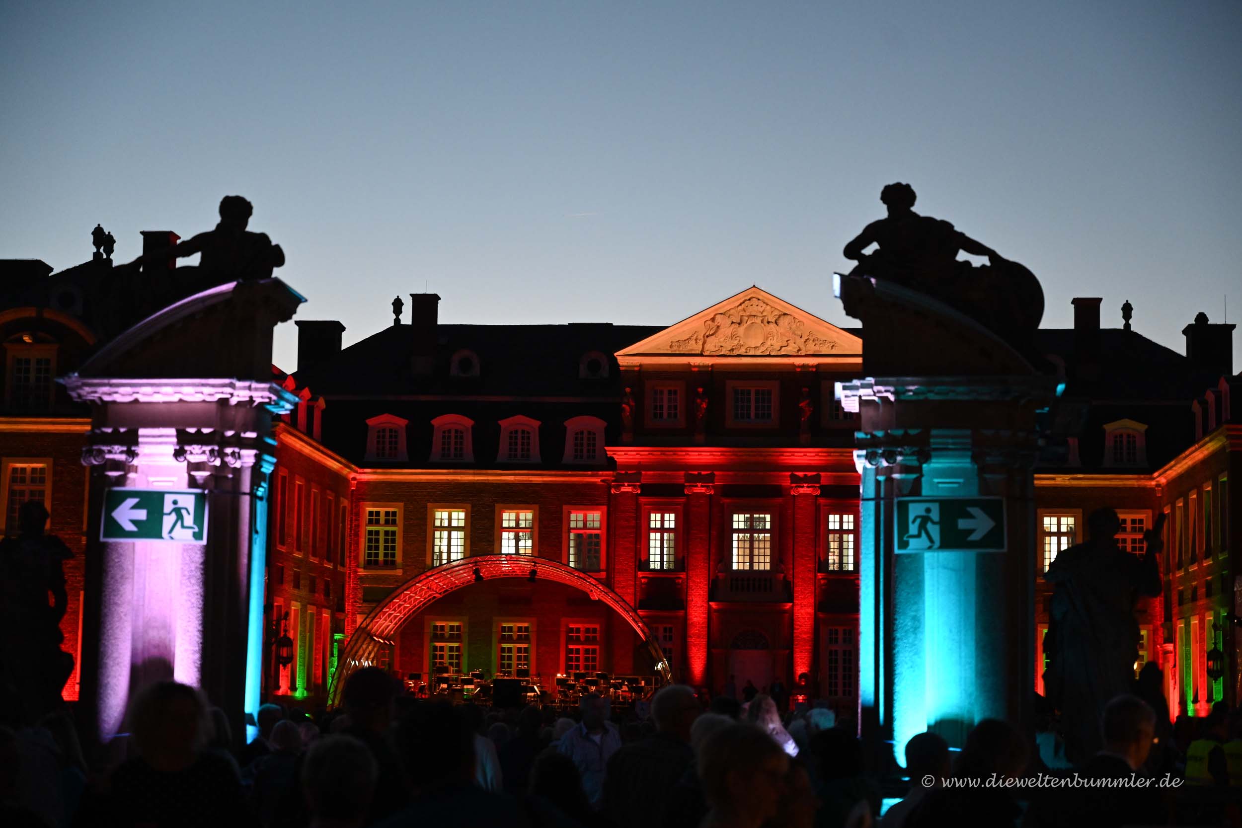 Zum einen wären da die klassischen Sitzplätze direkt vor der Bühne und eingerahmt von den illuminierten Gebäudeflügeln des Schlosses.