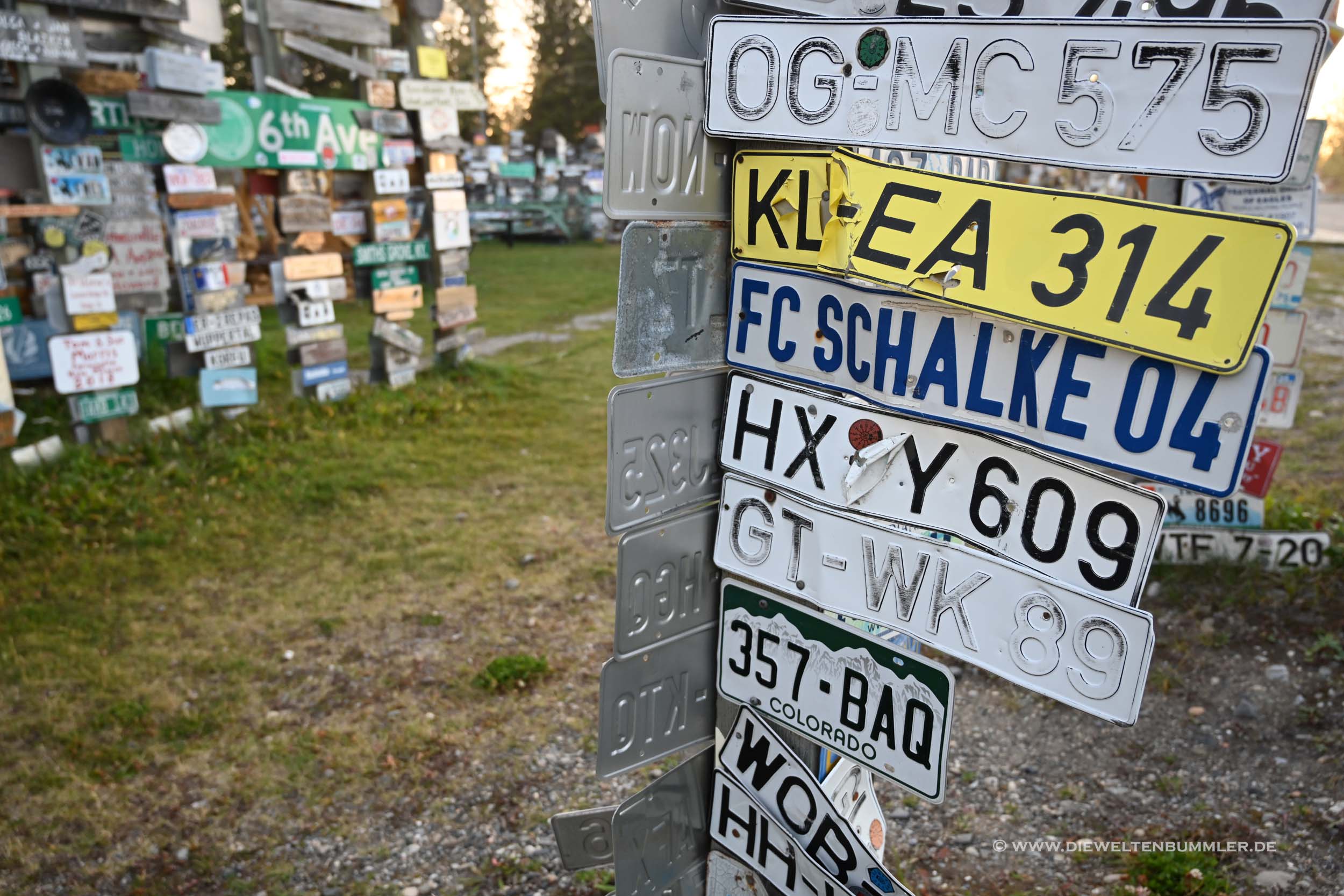 Diesem Schild folgten im Laufe der Zeit viele weitere Schilder und heute ist es übliche Praxis, bei einem Roadtrip auf dem Alaska Highway, ein mitgebrachtes Schild im sogenannten Watson Lake Sign Post Forest anzubringen. Als wir vor einigen Jahren einen solchen Roadtrip nach Alaska unternahmen und dabei an der kleinen Ortschaft Watson Lake vorbei kamen, stoppten wir natürlich am Schilderwald und brachten auch ein Schild an.