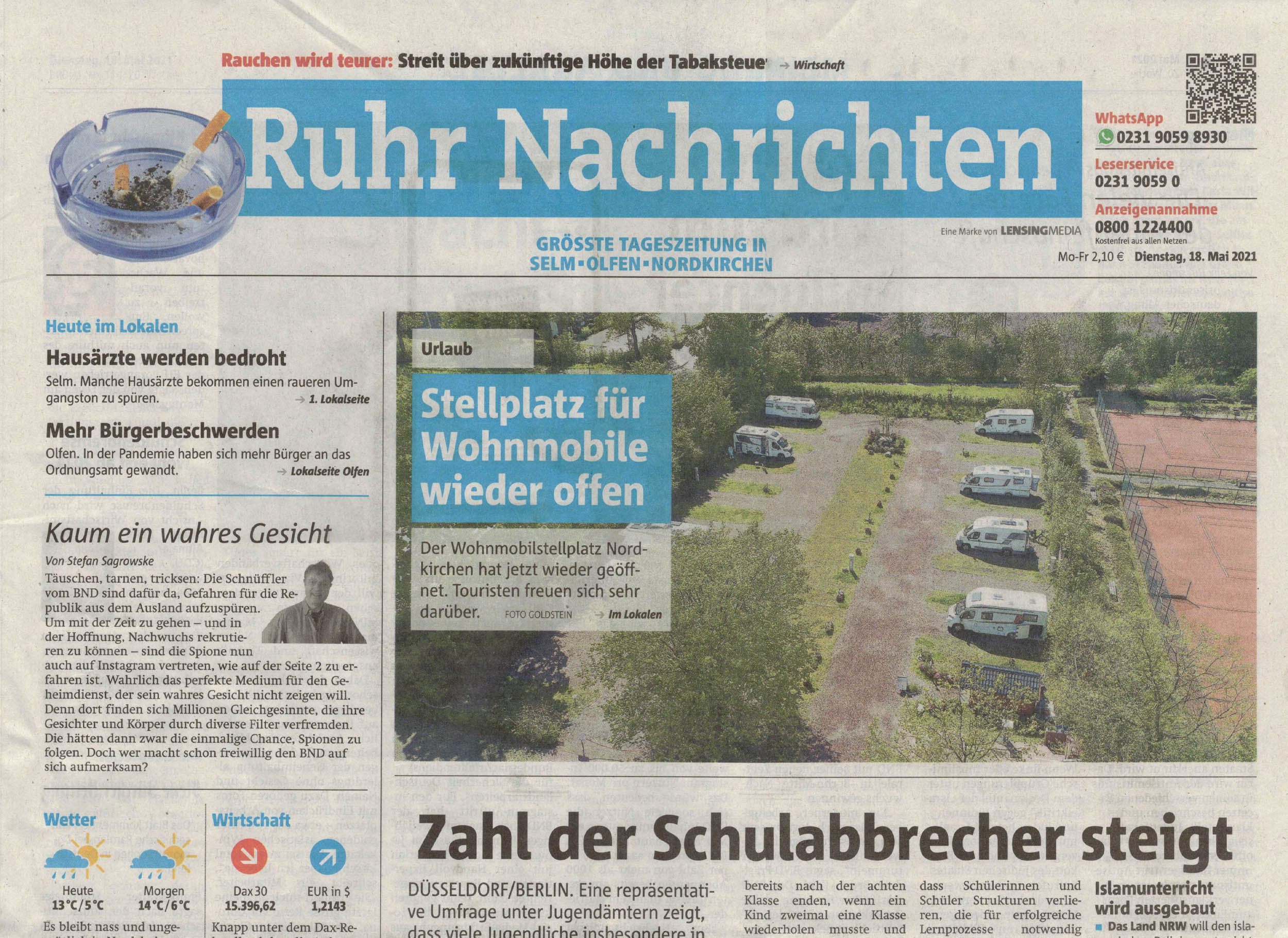 Ruhrnachrichten – Titelseite vom 18. Mai 2021